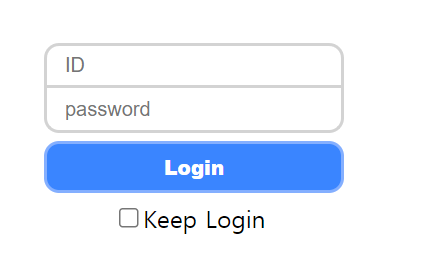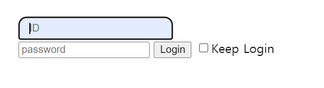<input type="text" placeholder="ID"> <input type="password" placeholder="password"> <button>Login</button> <label> <input type="checkbox">Keep Login </label> <link rel="stylesheet" href="style.css">style.css