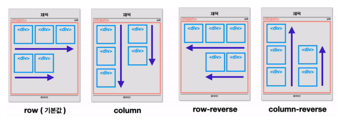 row(기본 값) → 가로 수직 방향 , column → 세로 수직 방향