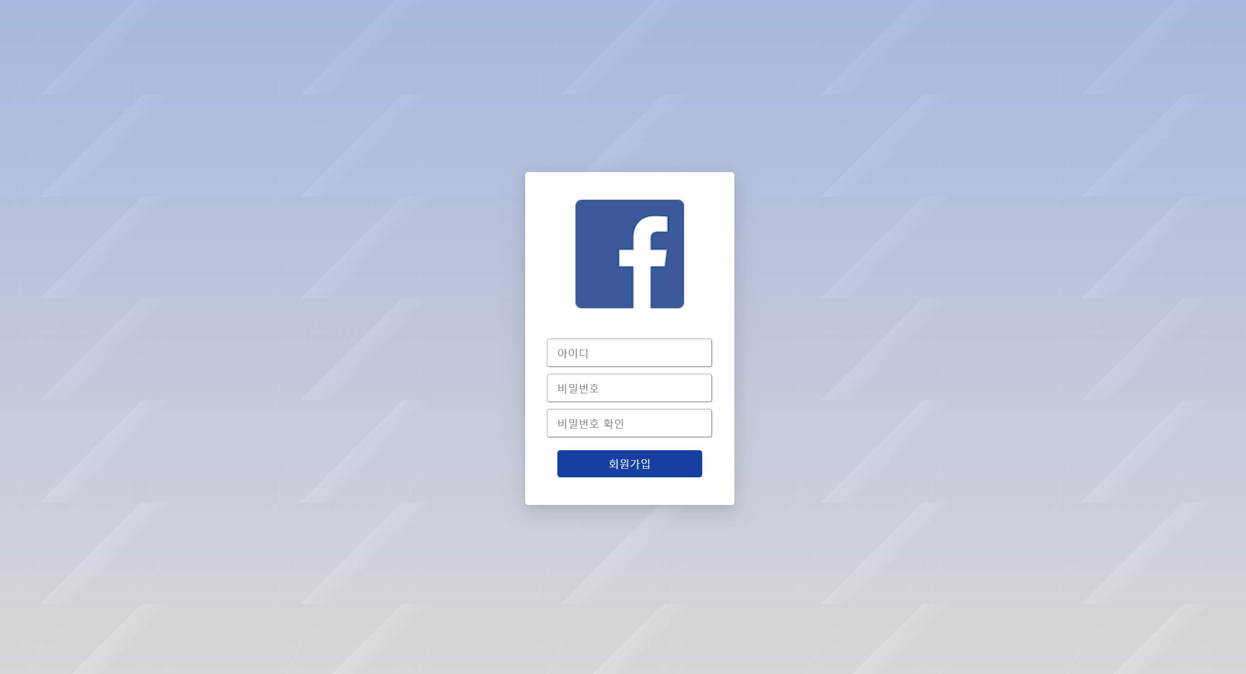 <!DOCTYPE html> <html lang="en"> <head> <meta charset="UTF-8" /> <meta http-equiv="X-UA-Compatible" content="IE=edge" /> <meta name="viewport" content="width=device-width, initial-scale=1.0" /> <title>유효성 검사</title> <link rel="stylesheet" href="global-style.css" /> <link rel="stylesheet" href="style.css" /> <link href="//spoqa.github.io/spoqa-han-sans/css/SpoqaHanSansNeo.css" rel="stylesheet" type="text/css" /> <script src="validator.js"></script> </head> <body> <main> <img class="logo" src="./images/fb-logo.png" alt="CODE_STATES_LOGO" /> <fieldset> <input type="text" id="username" placeholder="아이디" /> </fieldset> <div class="success-message hide">사용할 수 있는 아이디입니다</div> <div class="failure-message hide">아이디는 네 글자 이상이어야 합니다</div> <fieldset> <input type="password" id="password" placeholder="비밀번호" /> </fieldset> <fieldset> <input type="password" id="password-retype" placeholder="비밀번호 확인" /> </fieldset> <div class="mismatch-message hide">비밀번호가 일치하지 않습니다</div> <div class="clear-message hide">비밀번호가 일치합니다</div> <fieldset class="signup"> <button>회원가입</button> </fieldset> <script src="script.js"></script> </main> </body> </html>style.css