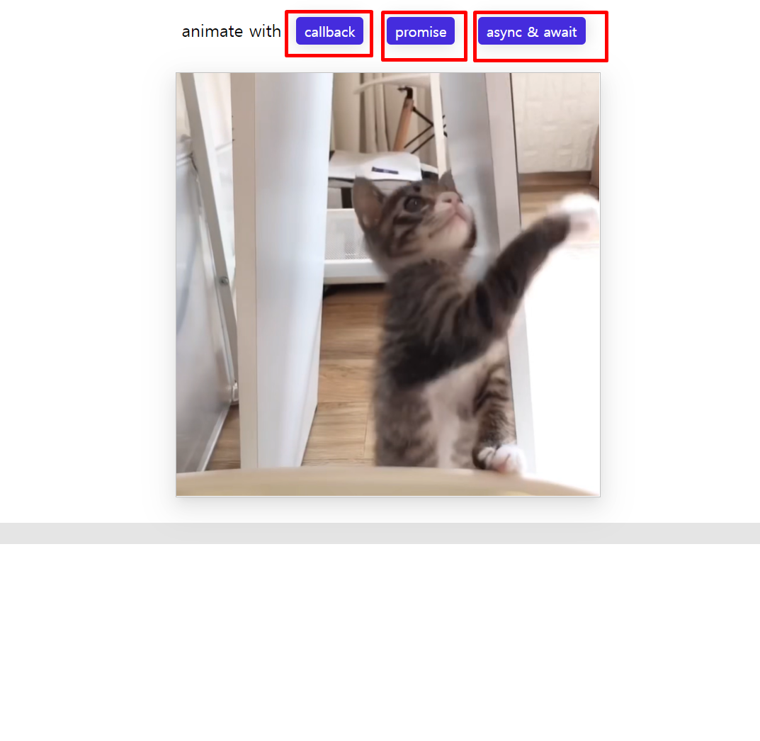 function runPromise() { resetTitle(); playVideo(); sleep(1000).then(() => { // promise ์ฌ์ฉํด์ sleep ํจ์ ์ฌ์ฉ pauseVideo(); displayTitle(); }) .then(sleep.bind(null, 500)) // then ํจ์ ์ฌ์ฉํด์ sleepํจ์ ํธ์ถ .then(highlightTitle) .then(sleep.bind(null, 2000)) .then(resetTitle) }runAsync ํจ์