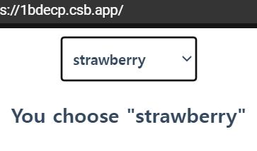 import React, { useState } from "react"; import "./styles.css"; function SelectExample() { const [choice, setChoice] = useState("apple"); const fruits = ["apple", "orange", "pineapple", "strawberry", "grape"]; const options = fruits.map((fruit) => { return <option value={fruit}>{fruit}</option>; }); console.log(choice); const handleFruit = (event) => { setChoice(event.target.value); };์คํ๊ฒฐ๊ณผ