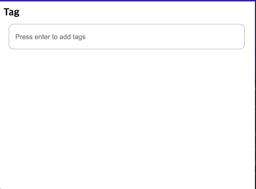 const Tag = () => { const [tagItem, setTagItem] = useState('') const [tagList, setTagList] = useState([]) const onKeyPress = e => { if (e.target.value.length !== 0 && e.key === 'Enter') { submitTagItem() } } const submitTagItem = () => { let updatedTagList = [...tagList] updatedTagList.push(tagItem) setTagList(updatedTagList) setTagItem('') } const deleteTagItem = e => { const deleteTagItem = e.target.parentElement.firstChild.innerText const filteredTagList = tagList.filter(tagItem => tagItem !== deleteTagItem) setTagList(filteredTagList) } return ( <WholeBox> <Title text='Tag' /> <TagBox> {tagList.map((tagItem, index) => { return ( <TagItem key={index}> <Text>{tagItem}</Text> <Button onClick={deleteTagItem}>X</Button> </TagItem> ) })} <TagInput type='text' placeholder='Press enter to add tags' tabIndex={2} onChange={e => setTagItem(e.target.value)} value={tagItem} onKeyPress={onKeyPress} /> </TagBox> </WholeBox> ) }자동완성 (Autocomplete)