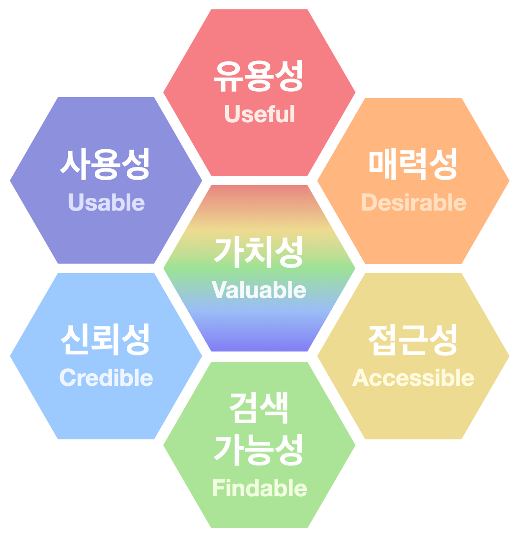 가치성은 위에서 언급된 모든 요소들을 총합하여 고객에게 가치를 제공하고 있는가에 관한 요소입니다. 사용자 마다 가치판단기준과 그 정도는 다 다릅니다. 특정 제품이 접근성에 모든 노력을 기울였다고 해도, 사용자가 접근성을 전혀 중요하게 생각하지 않는다면 가치를 제공하지 못할 수도 있는 것이죠. 따라서 가능한 모든 요소를 고르게 고려하는 것이 좋고, 제품 사용자들이 공통적으로 중요하게 생각하는 요소를 찾아냈다면 그 요소에 집중하는 것도 UX를 효율적으로 개선하는 전략이 될 수 있습니다.