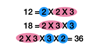 예를 들어, 12와 18의 최소공배수는 36이다.
