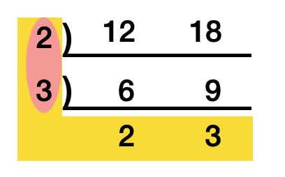 2와 3이 공약수이므로 2와 3을 곱하면 6인 최대공약수, 더 이상 나눌 수 없는 수들의 총 곱인 36이 최소공배수이다.