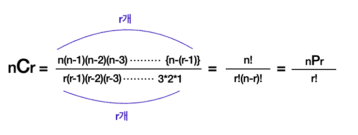 C - Combination n - 원소의 총개수 r - 그 중 뽑은 개수