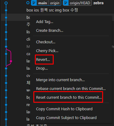 revert는 취소된 커밋을 다시 내가 push하는것이기 때문에 히스토리적으로 문제될 일이 없다.