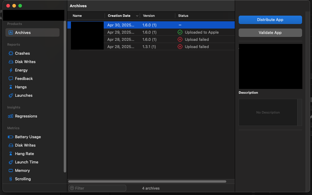 Archive에 성공하면 키체인 암호를 두번 입력하면