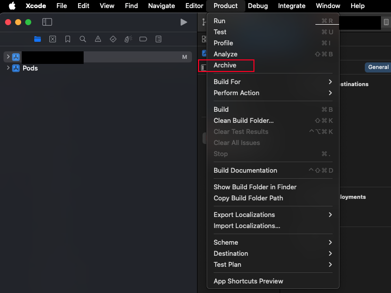 Product -> Archive 클릭