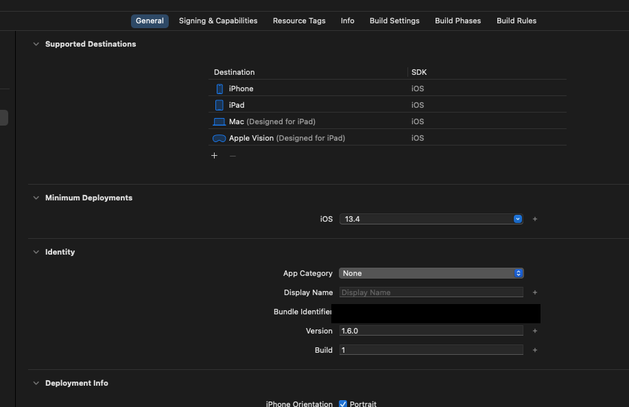 프로젝트 클릭 후 General에 들어가면 identity에 버전을 가장 최신 버전으로 업그레이드 한다.