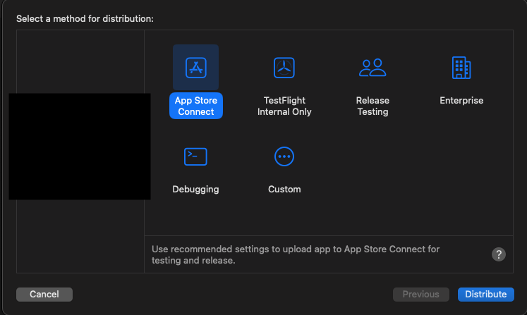 배포를 원하면 App Store Connect을 누르면 되고