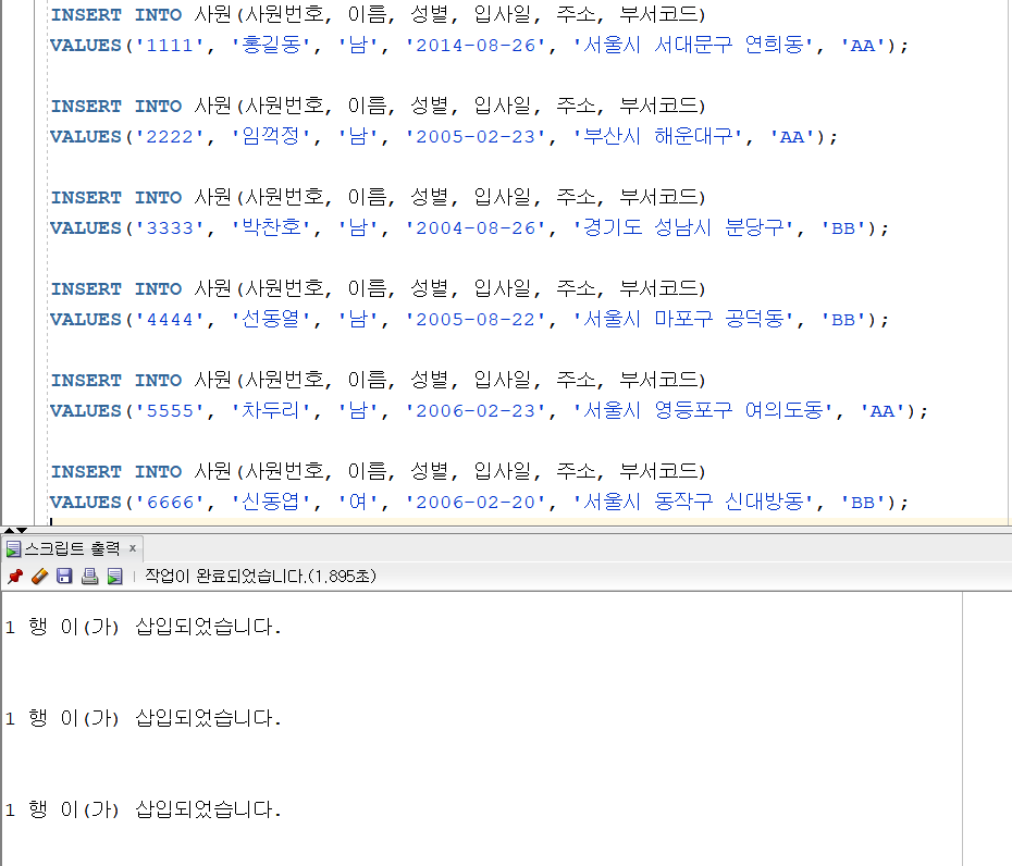사원테이블 정보 입력