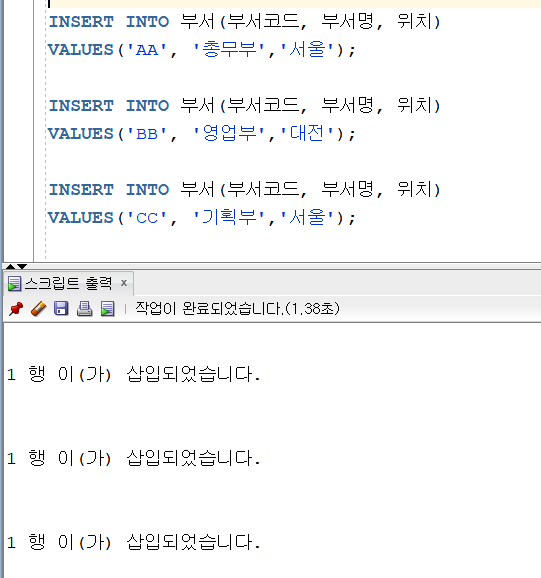 부서테이블 정보입력
