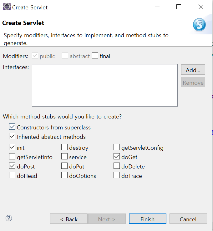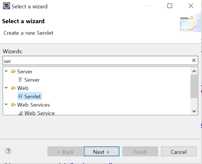 servlet -> next -> class name 설정 -> next