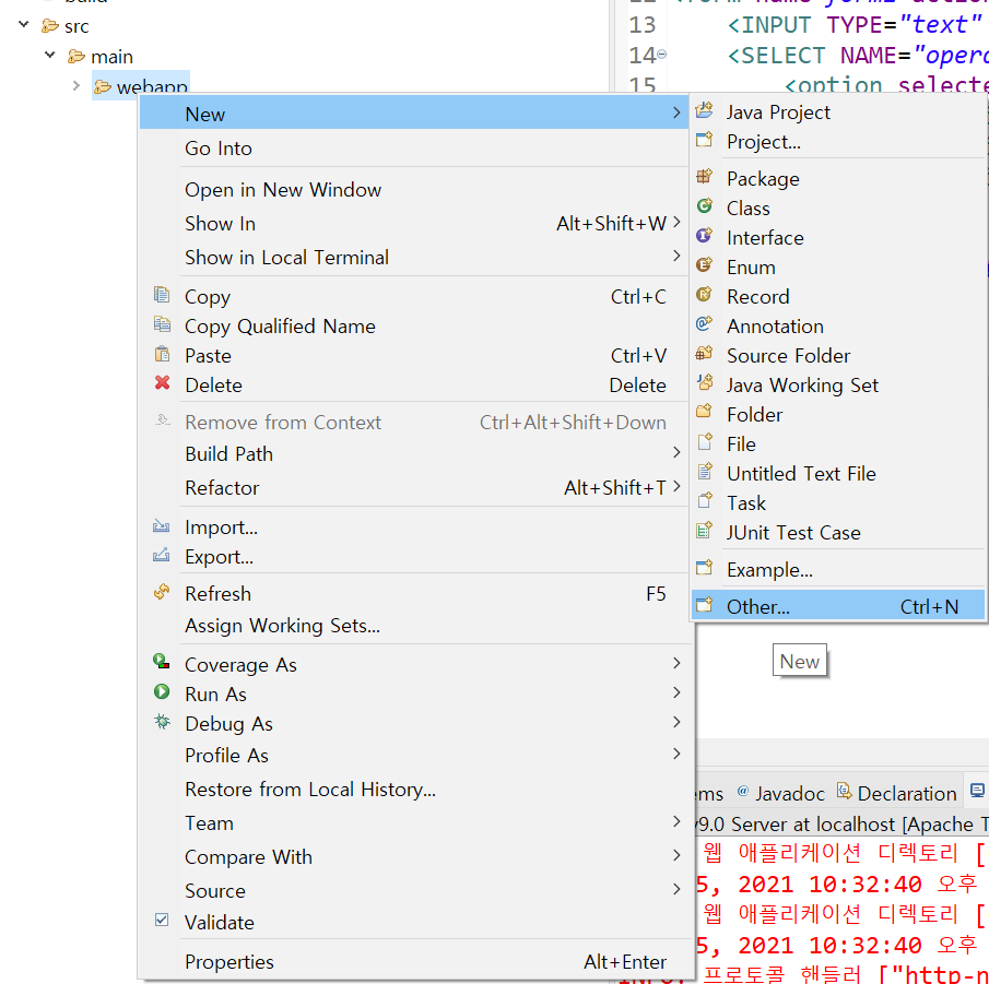 step 2. new -> jsp 선택가능하지만 초기화면 경우 other click