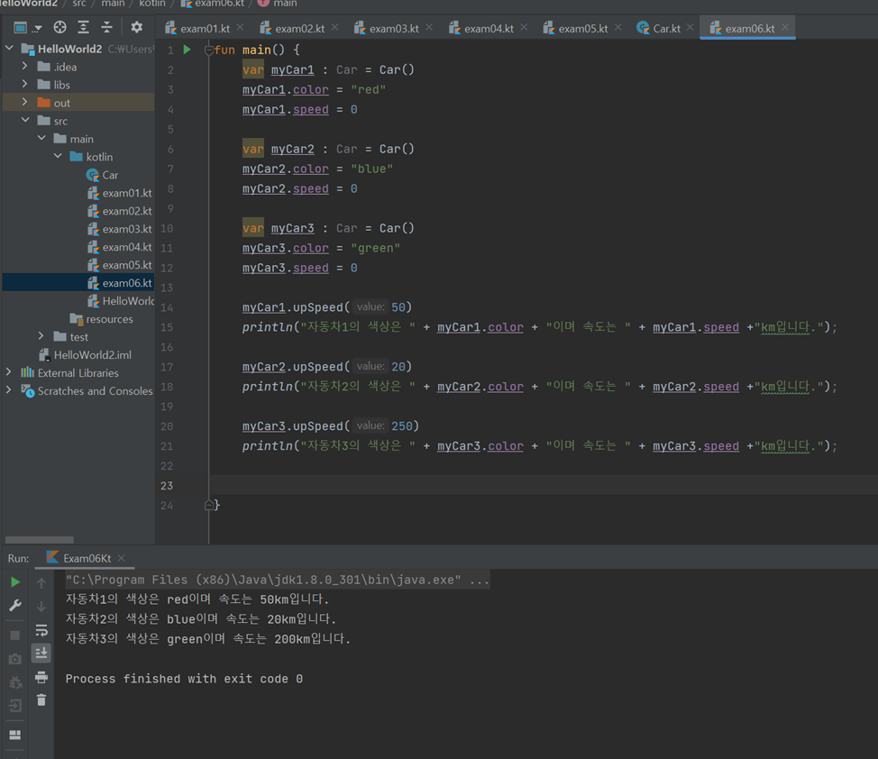 Car.kt 클래스를 인스턴스로 생성